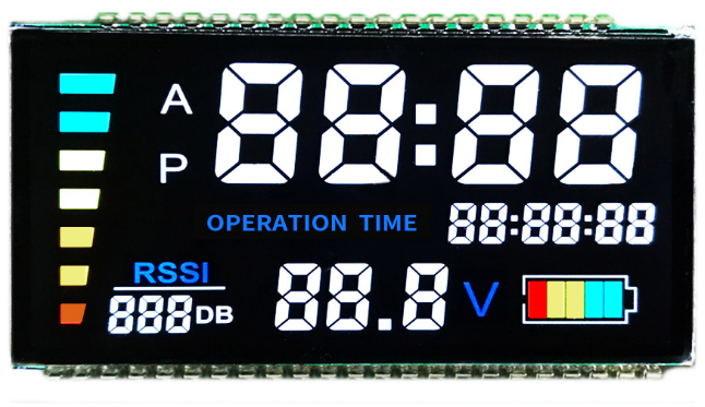 A segment is any line, dot or symbol that can be turned on and off independently. The photo below is of a segment LCD that contains numbers, a small clock symbol, the word ‘Jul’, and the letters ‘PM.’